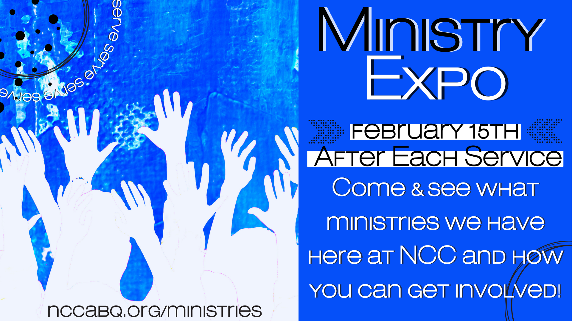 Join us on February 15th after each service for our Ministry Expo! Meet ministry leaders, ask questions, and discover how you can use your gifts to serve at NCC. Getting involved helps you grow in faith, build deep connections, and be a part of what God is doing here. There’s a place for you!